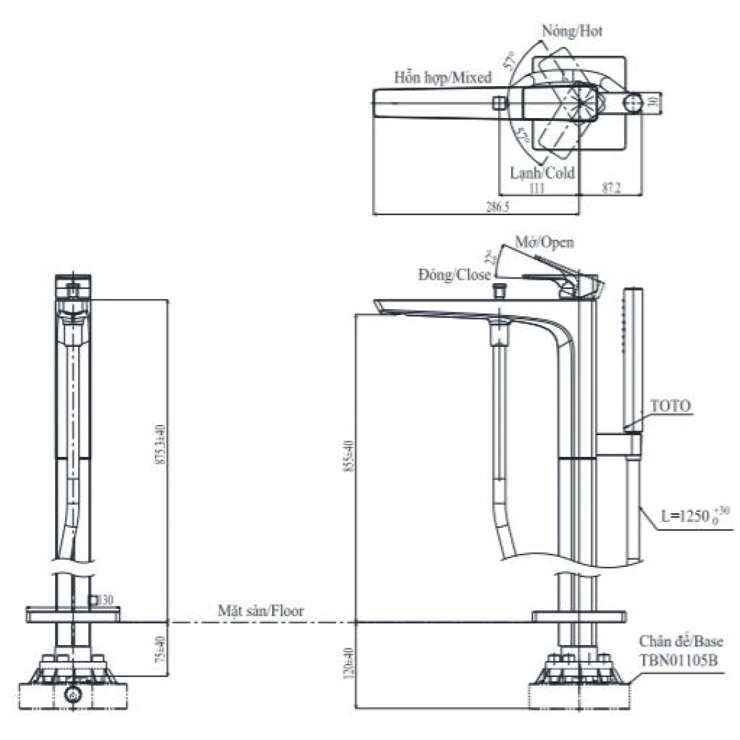 Tính năng vòi xả bồn TOTO TBG07306A+TBN01105B loại đứng