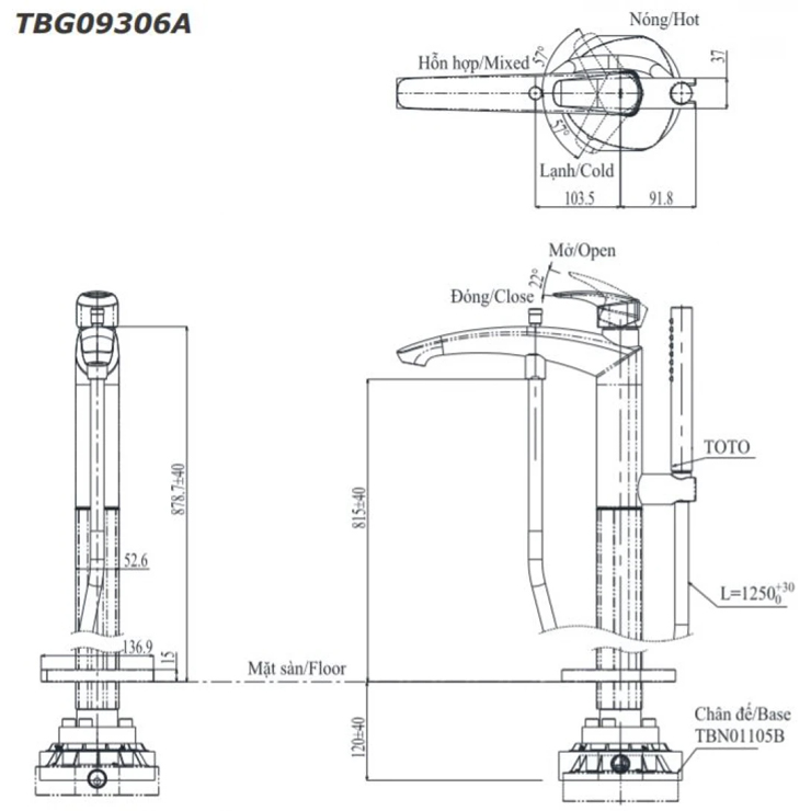 Tính năng vòi xả bồn TOTO TBG09306A+TBN01105B đặt sàn