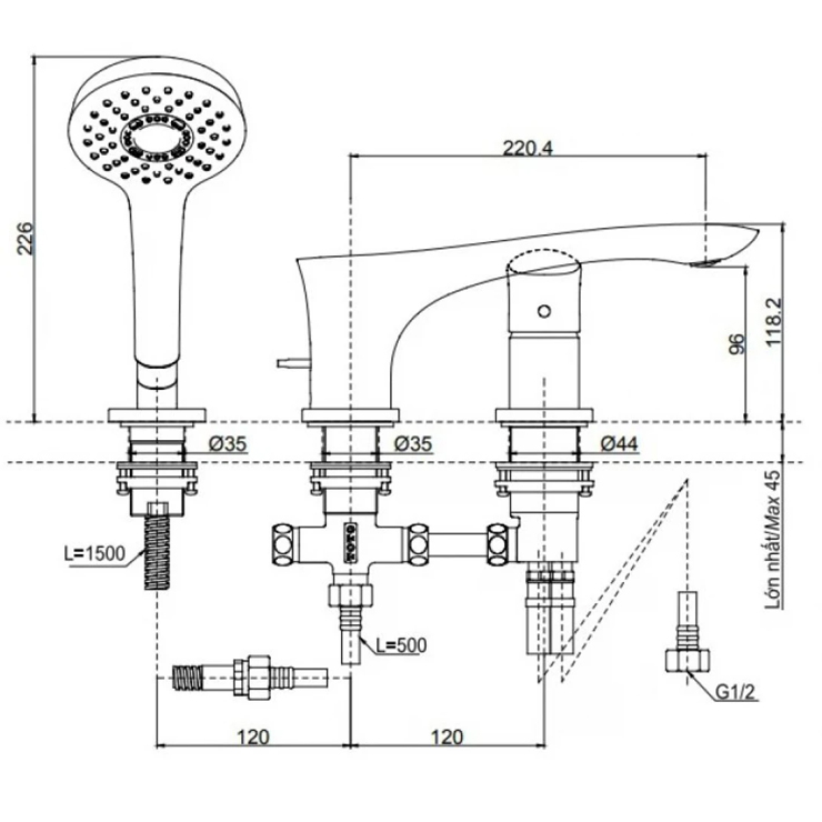 - Tên sản phẩm : Vòi xả bồn nóng lạnh (3 lỗ)