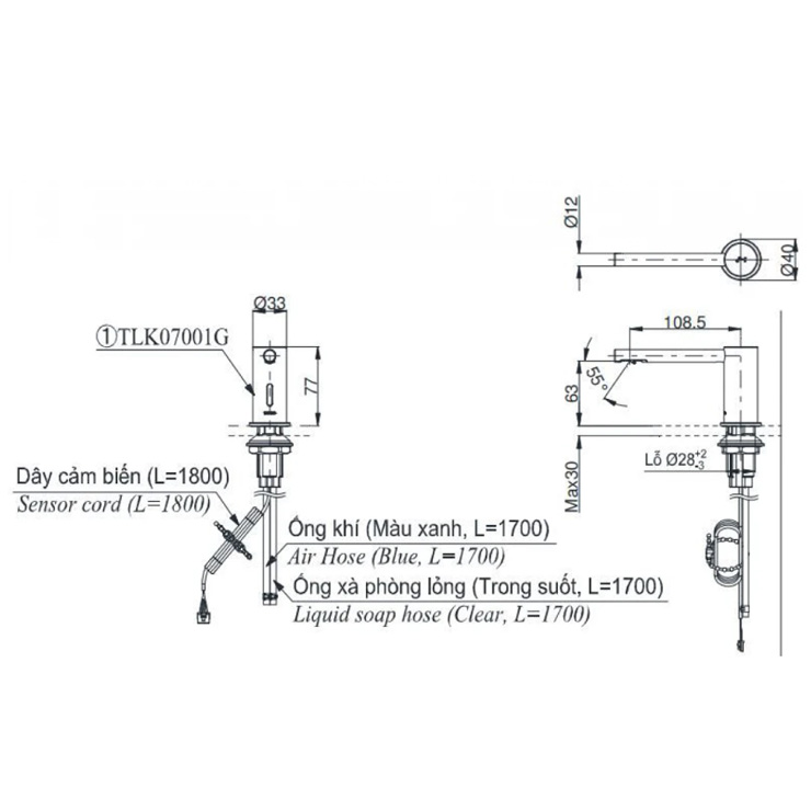 Bản vẽ kích thước vòi xà phòng tự động Toto TLK 07001 G